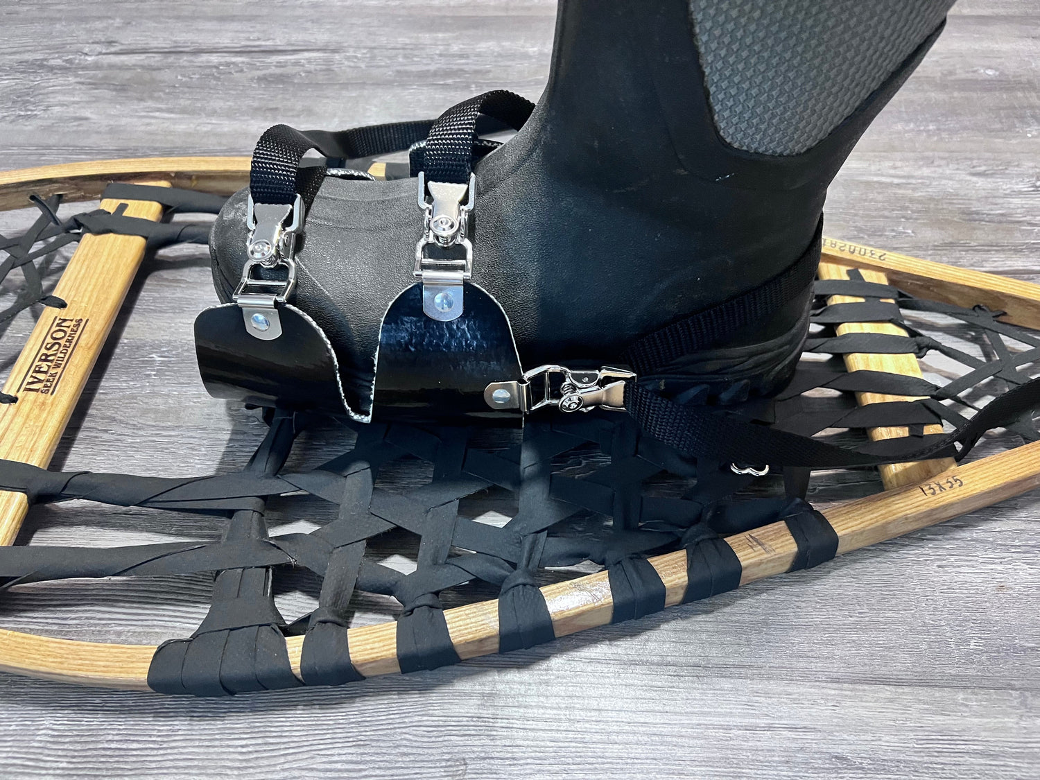 Designed for those who like to keep things simple. This binding has single short straps across the top of the boot and a standard heal strap. All with spring buckles. An easy on and off binding that still has the Iverson quality. Leather is the burgundy color and the neoprene is in black.