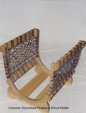 Iverson handcrafted Log Holder. Shown here in White Ash and laced with full grain rawhide.